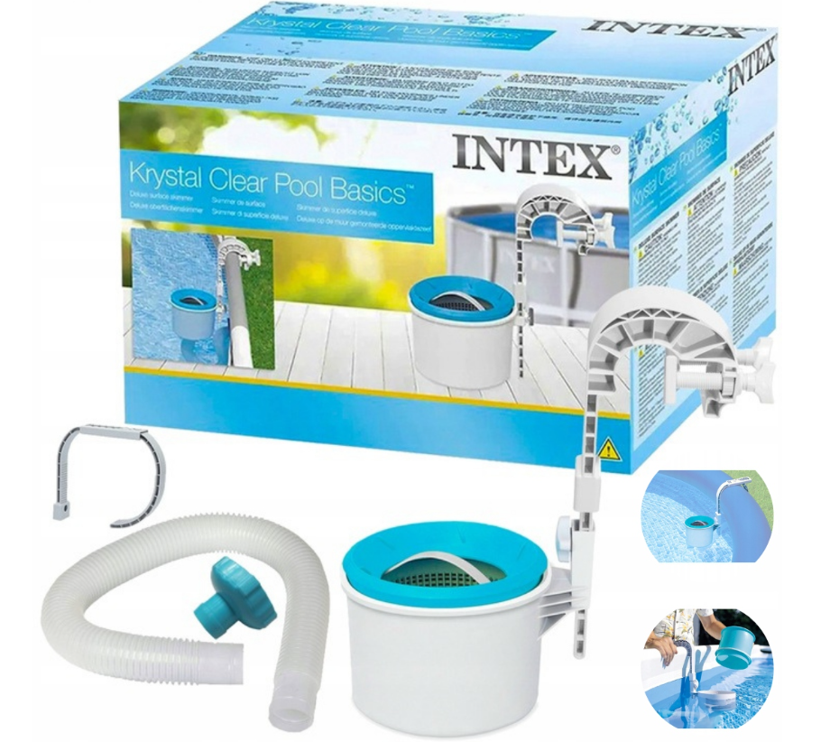 Skimmer Intex 28000 usuwa z powierzchni wody liście, owady i inne zanieczyszczenia, zapewniając klarowną i higieniczną wodę w Twoim basenie ogrodowym.